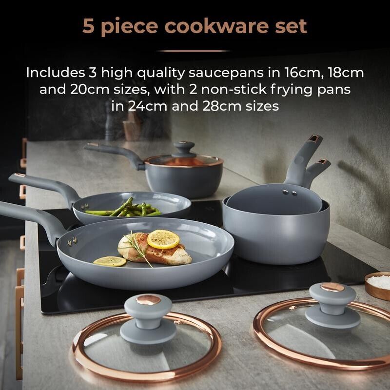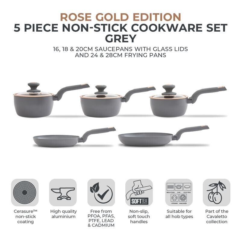 Tower Cavaletto 5 Piece Pan Set in Grey with Rose Gold Accents