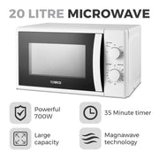 Tower 700W 20L Manual Microwave T24034WHT