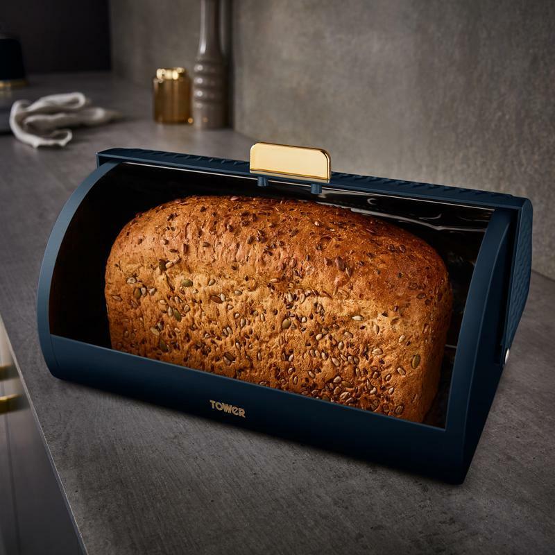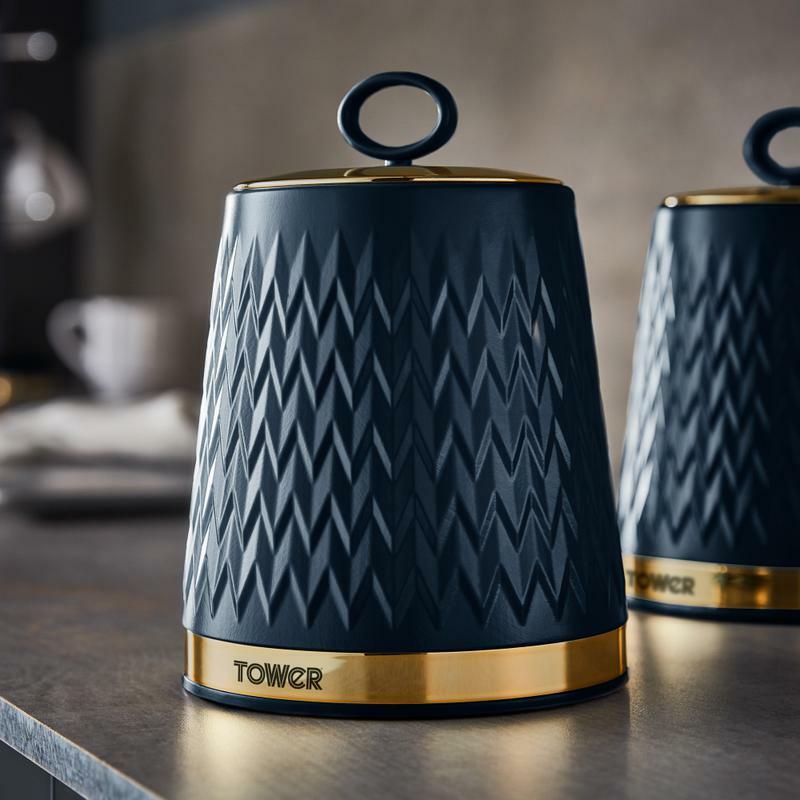 Tower Empire Bread Bin Canisters Set Midnight Blue & Brass Kitchen Storage Set