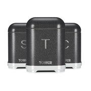Tower Glitz Noir Tea, Coffee, Sugar Canisters in Black Kitchen Storage Set