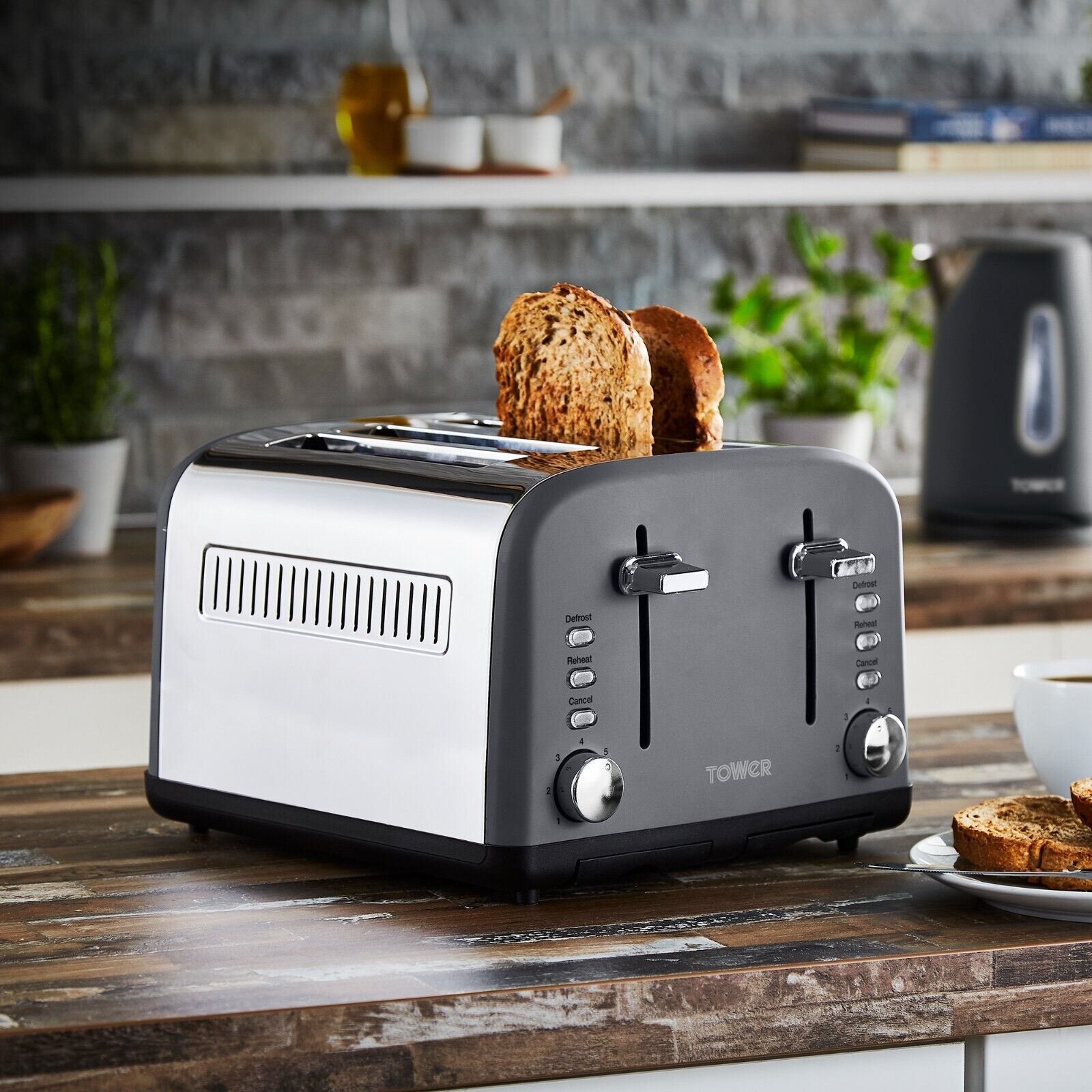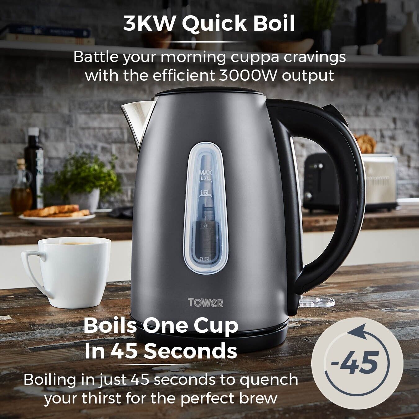 New Tower Infinity Stone 3KW 1.7L Jug Kettle, 4 Slice 1800w Toaster & Mug Tree Matching Set in Slate Grey. . Brand New UK Stock. Free Next Day Delivery. Full 3 Year Tower Manufacturer Guarantee