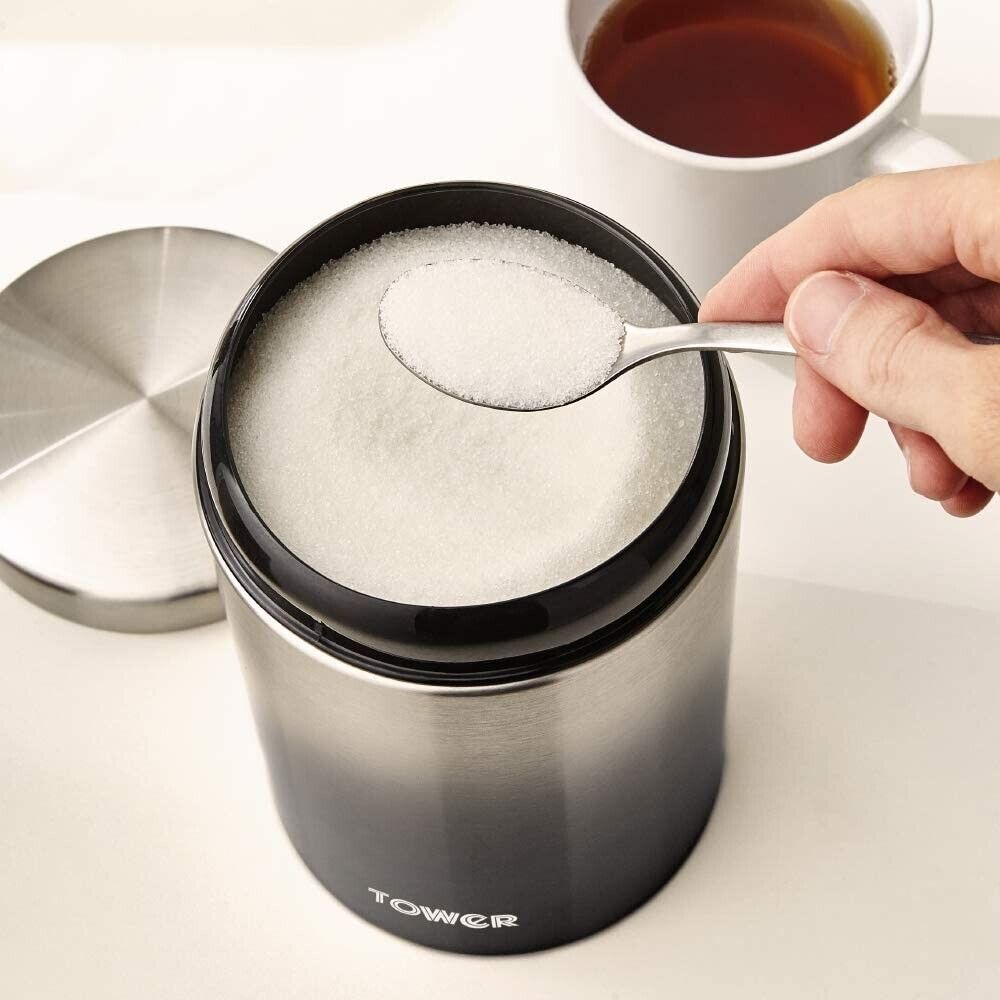 Lock in the freshness of your tea, coffee and sugar with the Tower Infinity Ombre 3 piece canister set. Constructed from high-quality stainless steel, each canister is coated in a graphite-coloured shading to bring added dimension to your countertop. Each container houses a 1.6 litre capacity for storing larger quantities of loose ingredients at once, complete with removable lids for easily emptying or filling up between uses. Their stainless steel frames require only a simple wipe clean to maintain their polished, ageless appearance