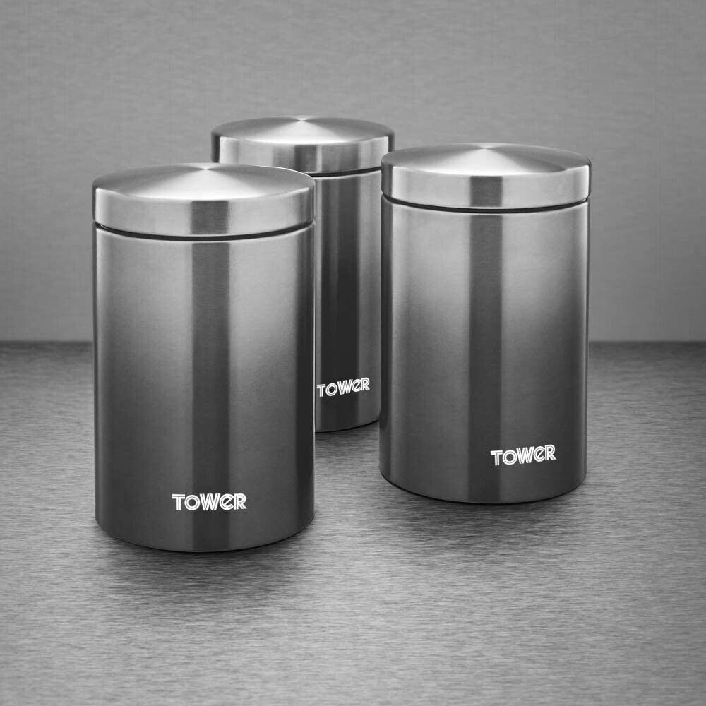 New Tower Infinity Ombre Set of 3 Tea, Coffee & Sugar Canister Matching Set in Graphite & Stainless Steel