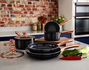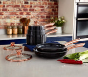 Tower Linear 5 Piece Pan Set with 3 Sauce Pans & 2 Frying Pans Black & Rose Gold
