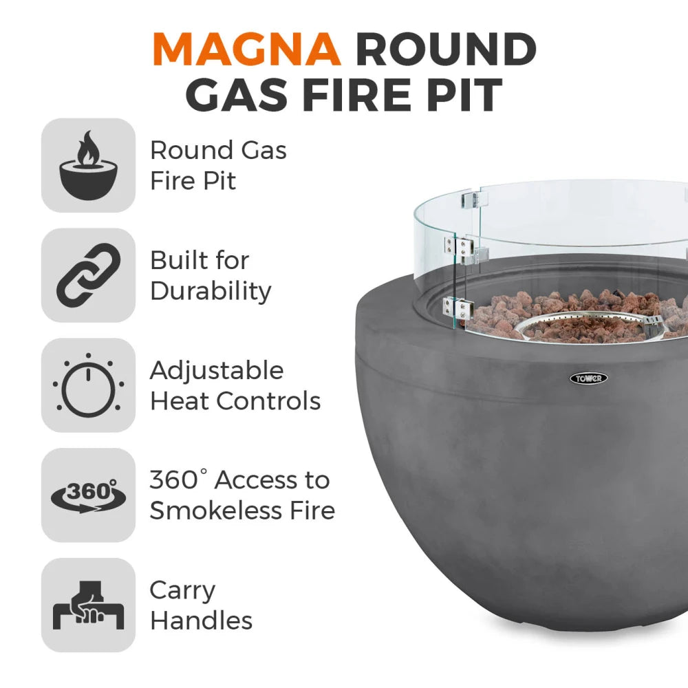 Tower Magna Circular Outdoor Gas Fire Pit with Weatherproof Cover T978527
