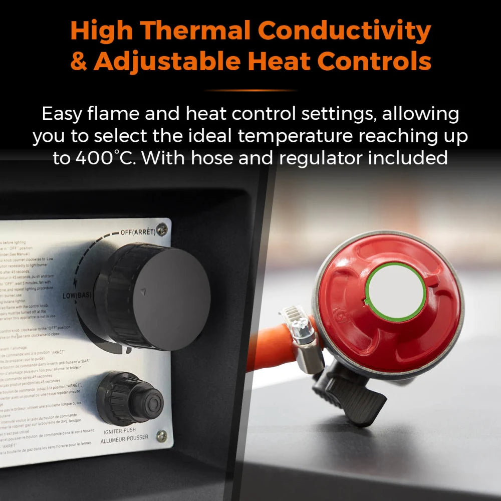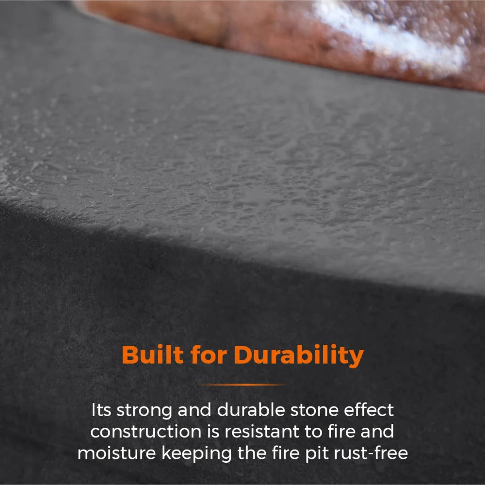 Keep yourself, friends and family toasty warm while spending time in the garden with Tower's natural stone designed round fire pit. The strong and durable stone effect construction is fire and moisture resistant, meaning the pit can withstand high temperatures and all sorts of weathers without causing any damage. In addition, the magnesium oxide construction is a high thermal conductor, warming the pit up quickly and efficiently meaning you and your guests will feel its benefits in rapid speed. The adjustable heat dial allows you to select the ideal temperature for you, reaching up to 400C when running for just 5 minutes, and can reach temperatures of up to 600C when running for 30 minutes! Its 360 access provides even heat emission and distribution while fuelled by gas, meaning it does not emit smoke, producing less air pollution and is more environmentally friendly.