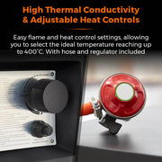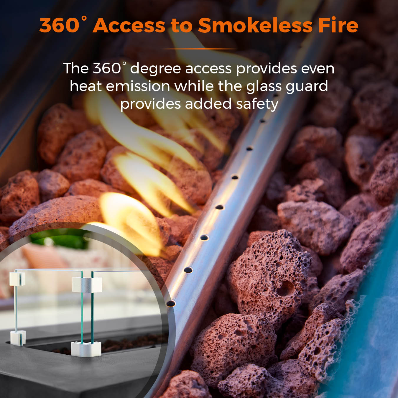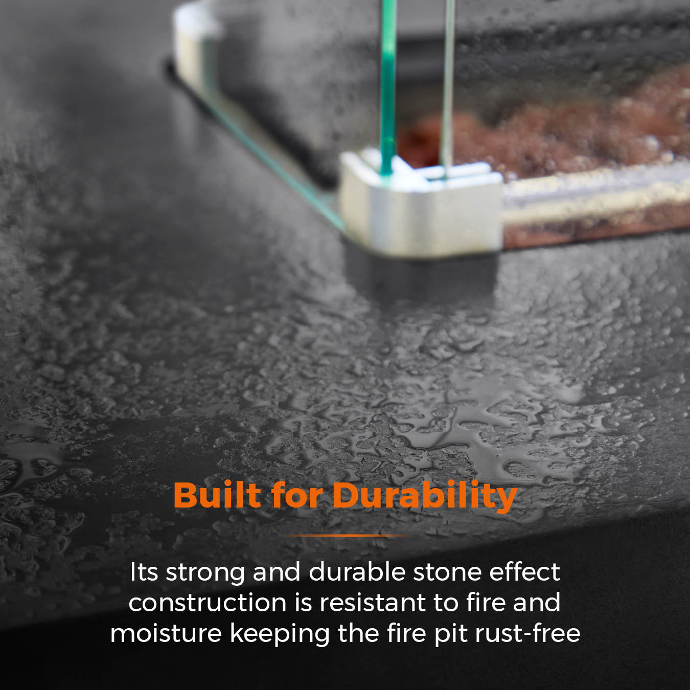 Keep yourself, friends and family toasty warm while spending time in the garden with Tower's natural stone designed large rectangular fire pit. The strong and durable stone effect construction is fire and moisture resistant, meaning the pit can withstand high temperatures and all sorts of weathers without causing any damage. In addition, the magnesium oxide construction is a high thermal conductor, warming the pit up quickly and efficiently meaning you and your guests will feel its benefits in rapid speed. The adjustable heat dial allows you to select the ideal temperature for you, reaching up to 400C when running for just 5 minutes, and can reach temperatures of up to 600C when running for 30 minutes! Its 360 access provides even heat emission and distribution while fuelled by gas, meaning it does not emit smoke, producing less air pollution and is more environmentally friendly.