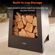 Tower Obelisk Outdoor Wood Burner with Built in Log Storage T978509. Free Delivery, 3 Year TOWER Manufacturer Guarantee