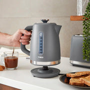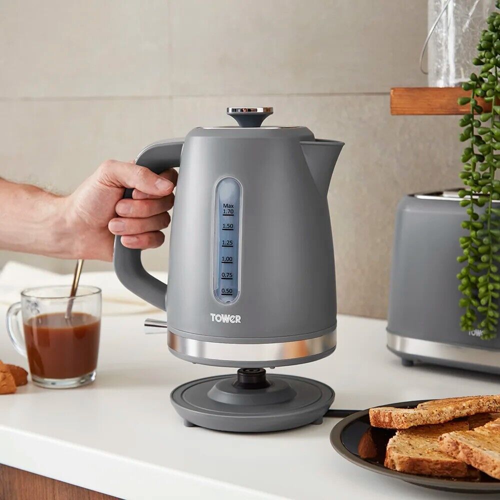 Tower Odyssey Grey 1.7L 3KW Jug Kettle & 2 Slice Toaster. Matching Kitchen Set in Grey with Chrome Accents.