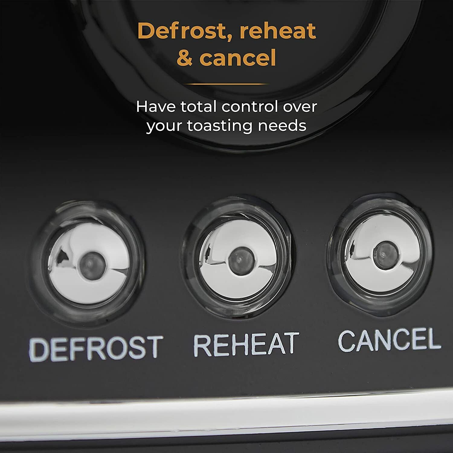 Enjoy toast to your taste every breakfast time with the Tower Renaissance 4 Slice Black Toaster. With its durable body and removable crumb trays, this is the ideal long-lasting kitchen essential that perfectly toasts bread, crumpets and bagels. Simply remove the trays and empty the contents straight into the bin to keep your kitchen tidy. Toast to your taste with the 7 browning levels that can be easily adjusted, alongside the defrost, heat and cancel functions to give you total control over your toasting needs. The stylish design of this toaster will make a statement on your kitchen countertop, adding a touch of elegance to your electrical appliances and fits perfectly with the Tower Renaissance Black Kettle.