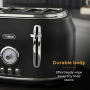 Tower T20065BLK Renaissance 4 Slice Toaster, 1630W, Black