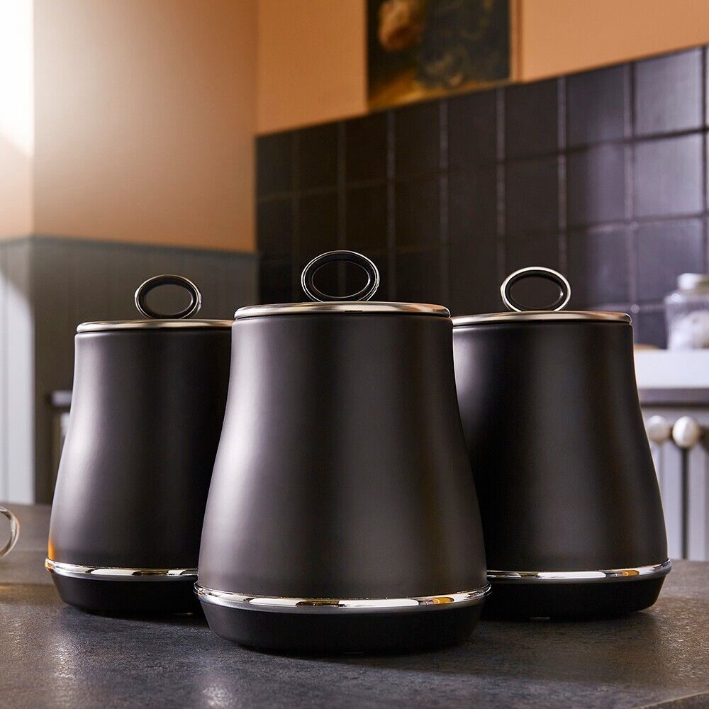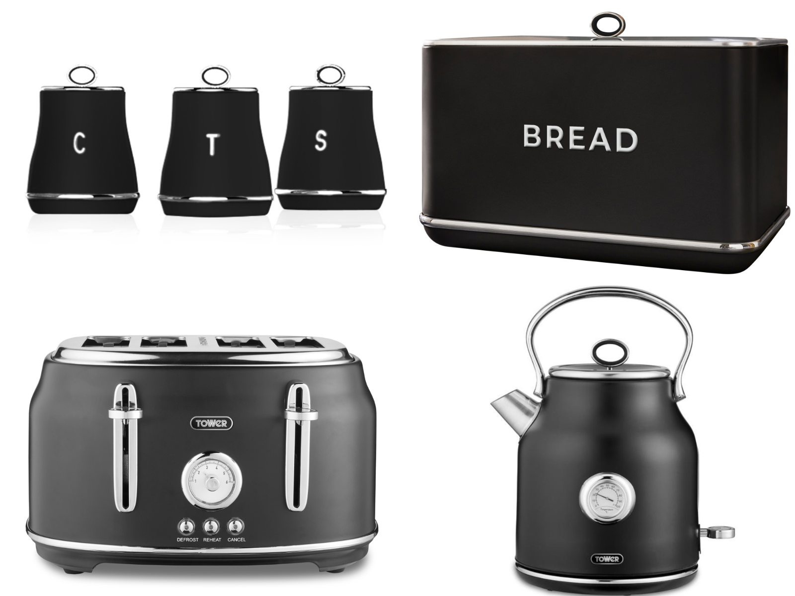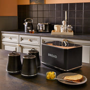 Tower Renaissance Black Kettle 4 Slice Toaster Bread Bin & Canisters Set of 6