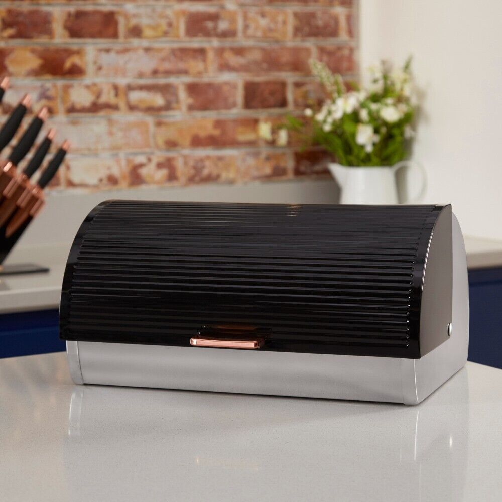LINEAR R oll Top Bread Bin Black & Rose Gold