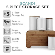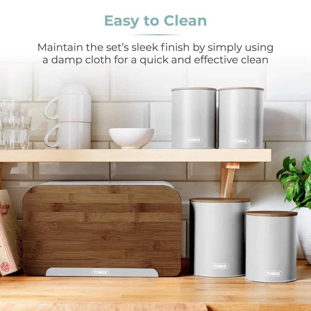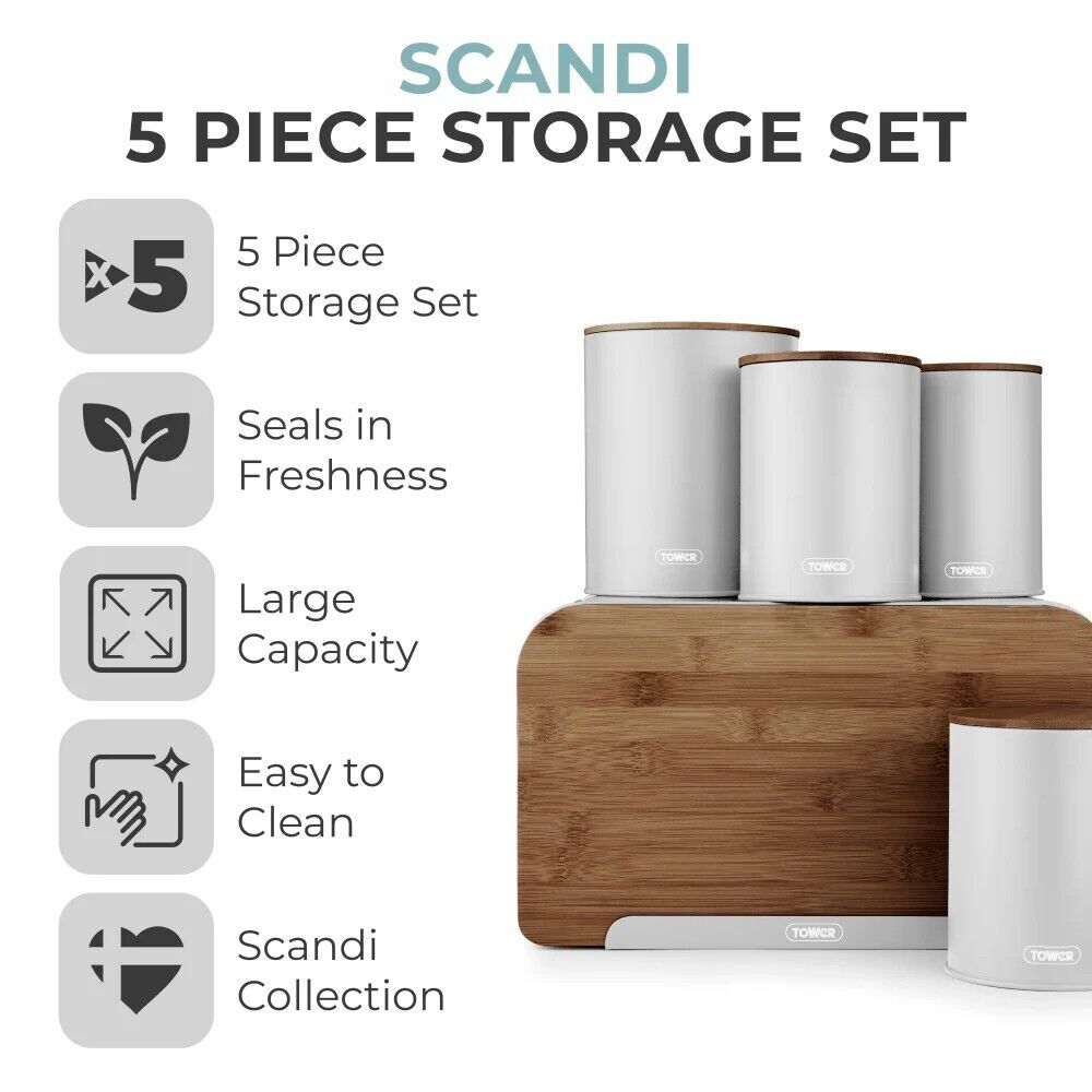 Tower Scandi 5 Piece Kitchen Storage Set including Bread Bin, Tea, Coffee, Sugar