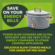 Tower Scandi Grey 1.7L 3KW Rapid Boil Kettle, 2 Slice Toaster, 3.5L Slow Cooker & Tea Coffee Sugar Canisters. Scandinavian Inspired Design Matching Kitchen Set of 6 in Grey with Wooden Accents