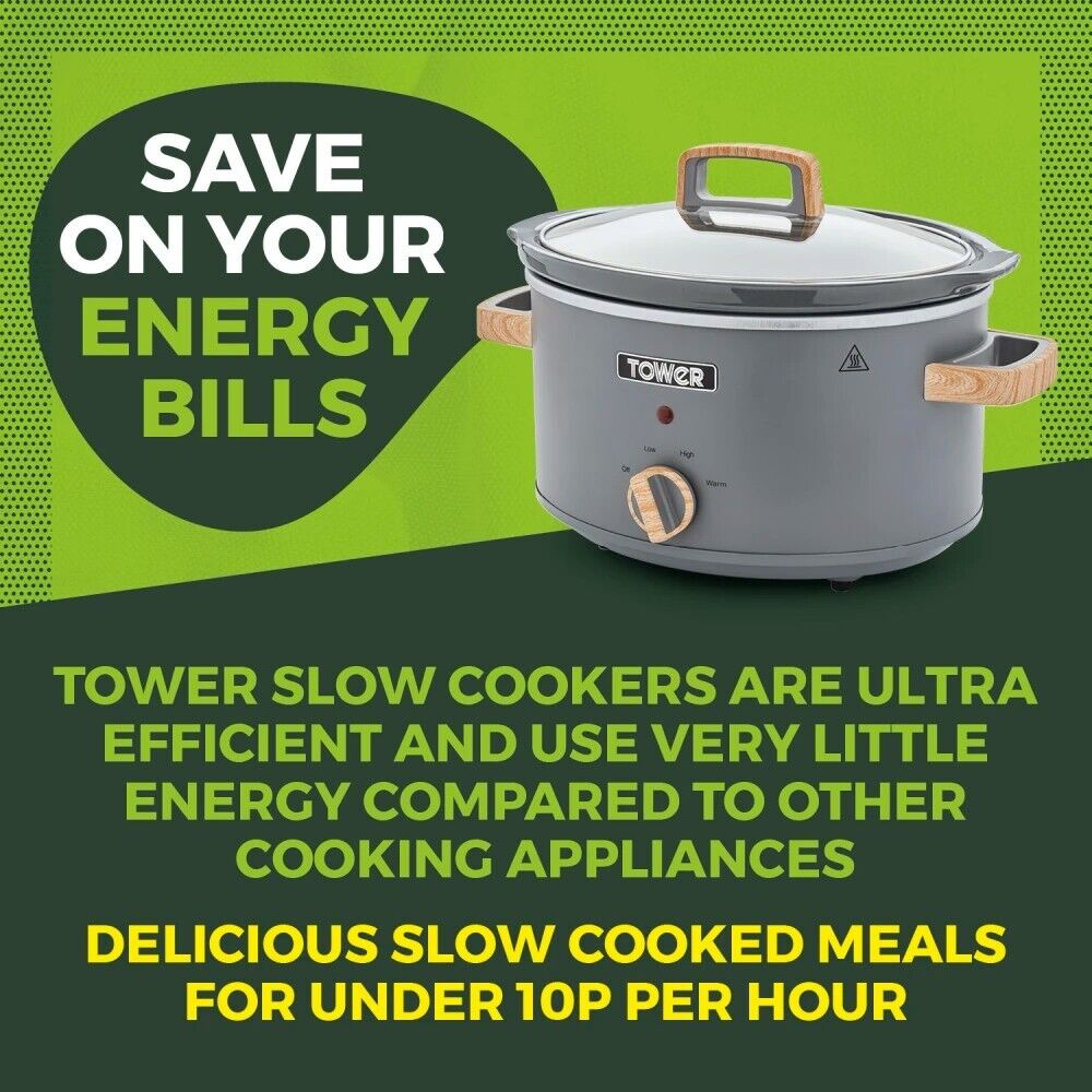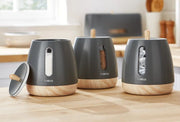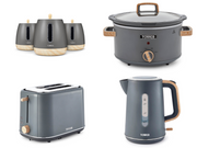 Tower Scandi 1.7L 3KW Kettle, 2 Slice Toaster, 3.5L Slow Cooker & Canisters Matching Set in Grey with Wooden Accents