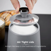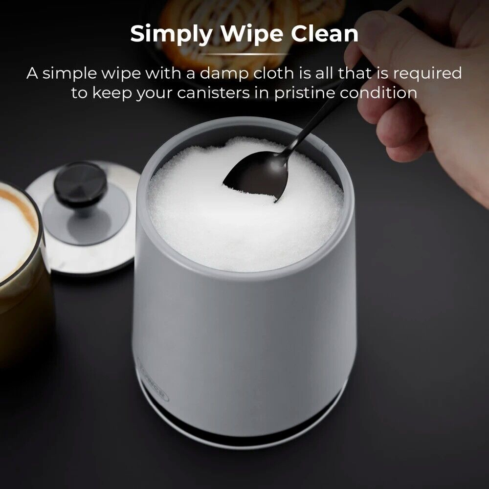 This set of three storage canisters from Sera are perfect for keeping your worktops tidy, whilst they can also be utilised to storage tea, coffee and sugar The stylish matte black finish with smoked grey trim adds a sleek feel to any modern kitchen and perfectly complements any contemporary and traditional decor. The lids are fully removable for easy access and completely airtight for long lasting freshness. The compact design and large 1.3L capacity ensures they take up minimal space on the countertop, whilst a simple wipe clean is all that is required to keep the canisters in pristine condition.