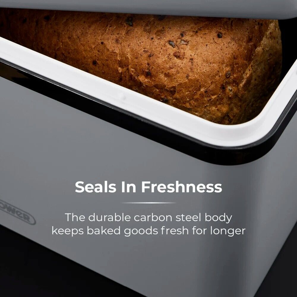 Tower Sera Breadbin & Tea Coffee Sugar Canisters Matching Kitchen Storage Set in Grey with Smoked Black Trim