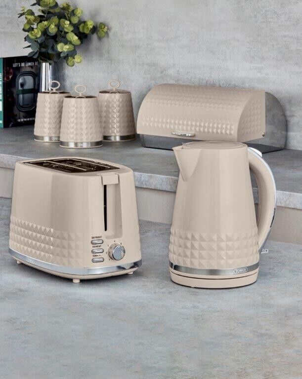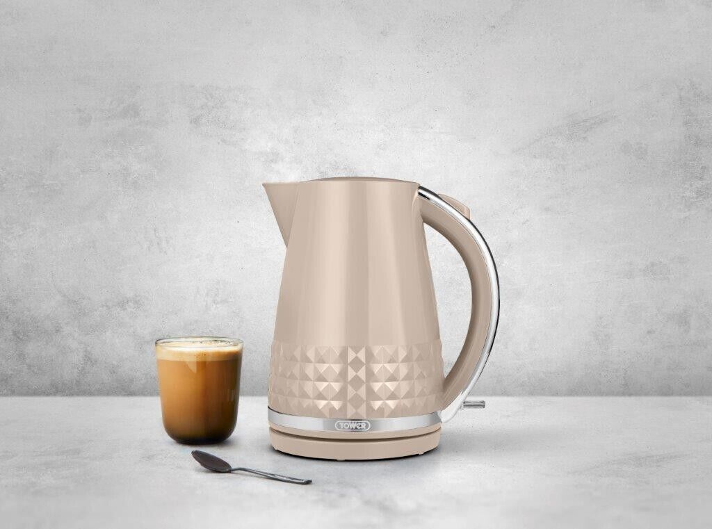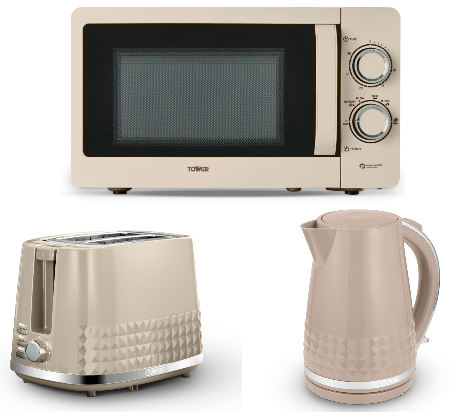Brand New Tower Solitaire 3K 1.7L Kettle, 2 Slice Toaster & T24042MSH 800W 20L Manual Microwave Matching Set in Latte with Chrome Accents. Fast Dispatch, Free Next Working Day Delivery. Tower 3 Year Manufacturer Guarantee