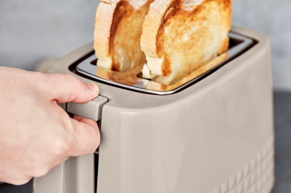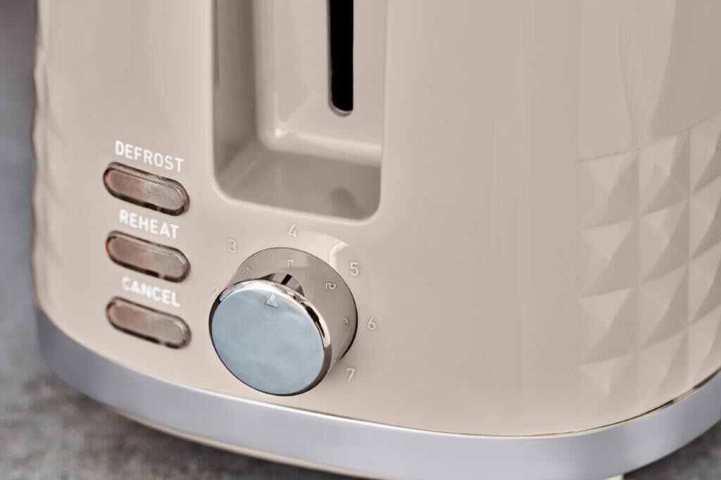 The functional toaster provides 2 slots with enough space to fit bread and snacks of varying sizes. It uses adjustable browning control with 7 settings for selecting your ideal consistency and crunch. A self-centring function ensures you always get crisp, even results with each slice. There are options for defrost and reheat, allowing you to toast bread from frozen for a quick breakfast solution. A removable crumb tray and integrated cord storage to keep your surfaces clean and tidy.