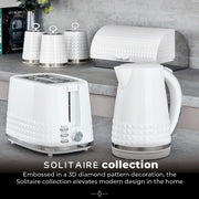 Tower Solitaire White 1.5L 3KW Jug Kettle, 2 Slice Toaster, T24042WHT 800W 20L Microwave, Bread Bin & Canisters Matching Kitchen Set