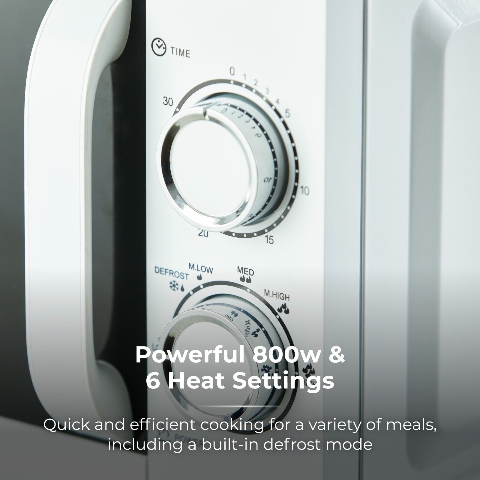 - Powerful 800W for faster cooking/heating