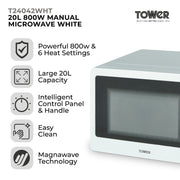Tower T24042WHT 800W 20L MICROWAVE