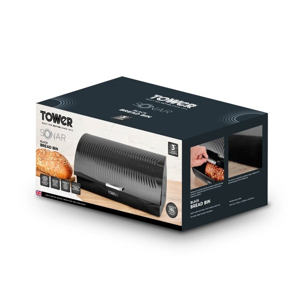 Tower Sonar Black Bread Bin Black - Textured Ripple Design T826219BLK