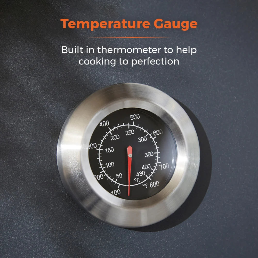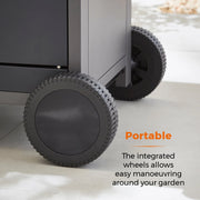 This Tower Stealth Four Burner BBQ lets you grill a wide range of succulent meats to a perfect texture and consistency using the precision heat thermometer. The porcelain enamel coated cast iron grill is highly durable and retains a large amount of heat, providing efficient grilling. This BBQ features a side burner for grilling, sauteing and storing sauces. A fat tray collects all the excess fat, which can be removed and easily cleaned to maintain performance. Integrated robust wheels make for easy portability, while the front cabinets provide extra storage and help disguise the gas bottle for a more pleasing visual appeal. Easy to assemble.