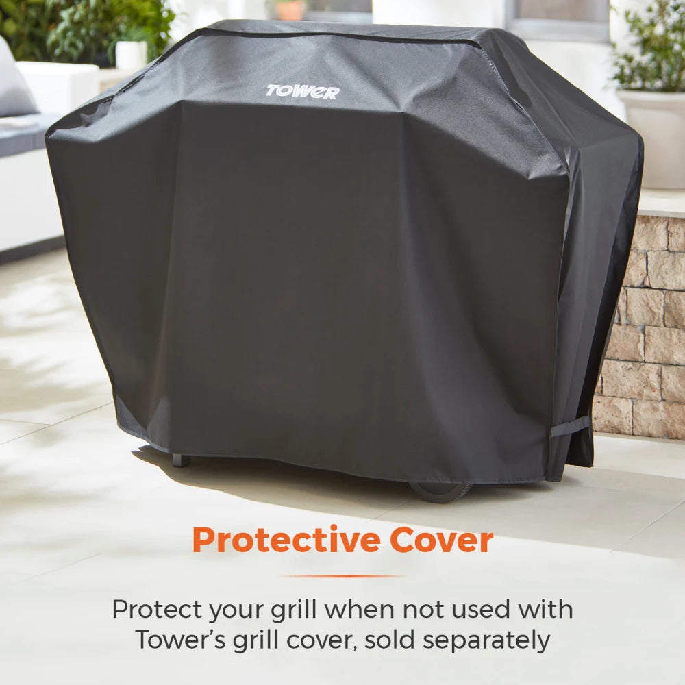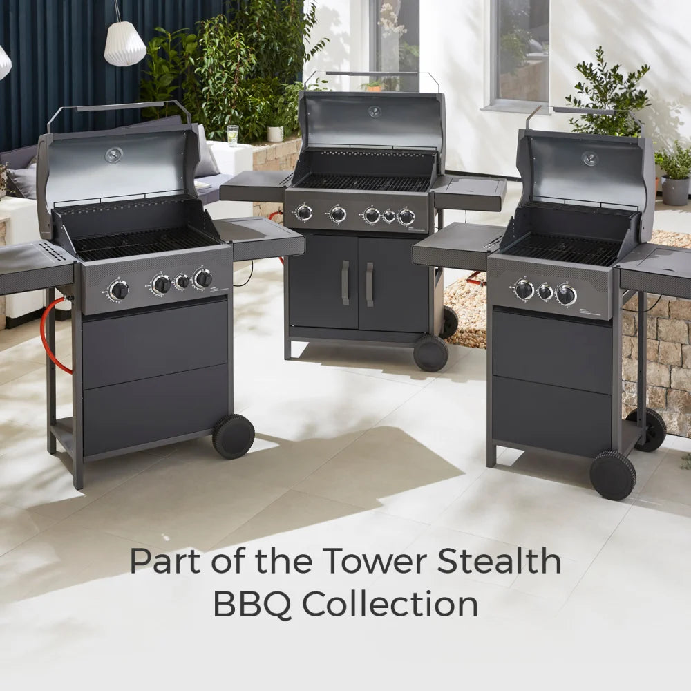 Tower Stealth 4000 Four Burner Gas BBQ, Including Side Burner, T978502. Free Delivery, 5 Year TOWER Manufacturer Guarantee