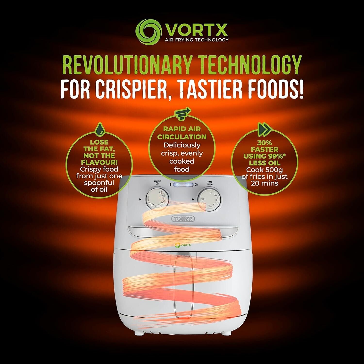 Tower Vortx 3.8L 1500W Colour Air Fryer in White. Brand New. Fast Dispatch & Free Next Working Day Delivery. 3 Year TOWER Manufacturer Warranty